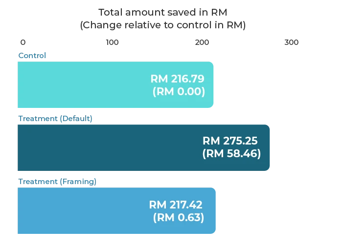 We found that setting the right default option - towards higher savings - had a strong influence on the amount people chose to save. This suggests that “smart defaults” can help people to save more. We need the industry to devise more products which can automate savings such as “Saving the change” or “sidecar accounts”, and make sure the default setting is that savings are enabled.