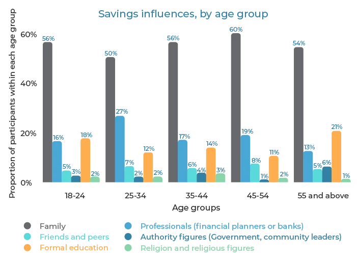 Family is a primary influence of savings behaviour for Malaysians, across all age groups. At the same time, professionals have a stronger influence on younger millennials (aged 25-34).
